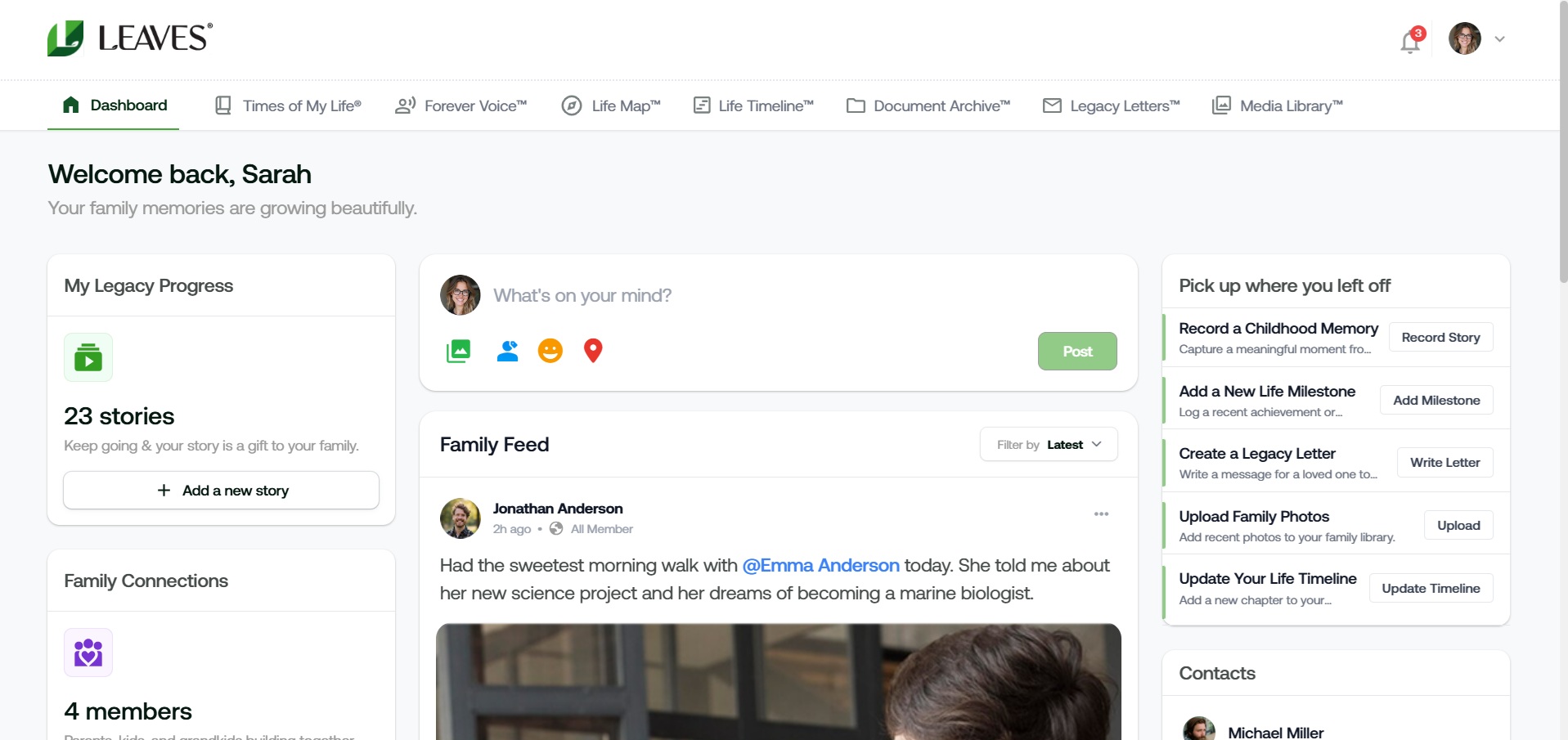 "We’re giving families around the world a living, breathing home for their stories, voices, memories, and milestones — all in one private, secure place," said Michael O'Donnell, the Founder of the Leaves Legacy Project. "This is a new infrastructure for legacy itself, one that allows families not only to remember where they came from, but to truly preserve who they are for generations yet to come.”